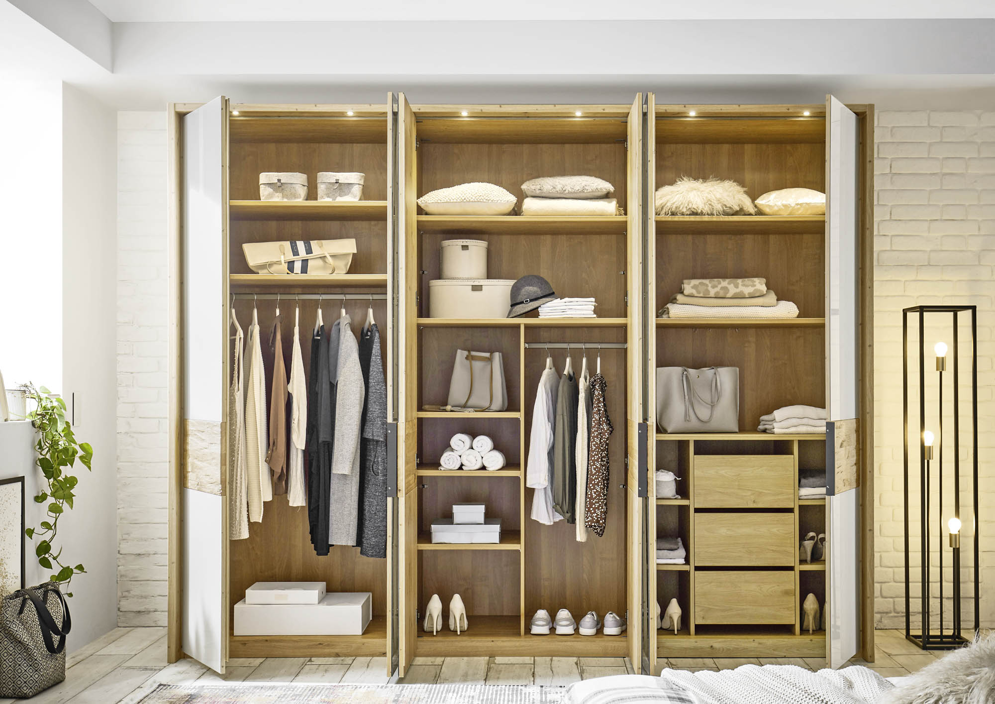 Calina Kleiderschrank mit Glastüren Champagner – individuell planbar