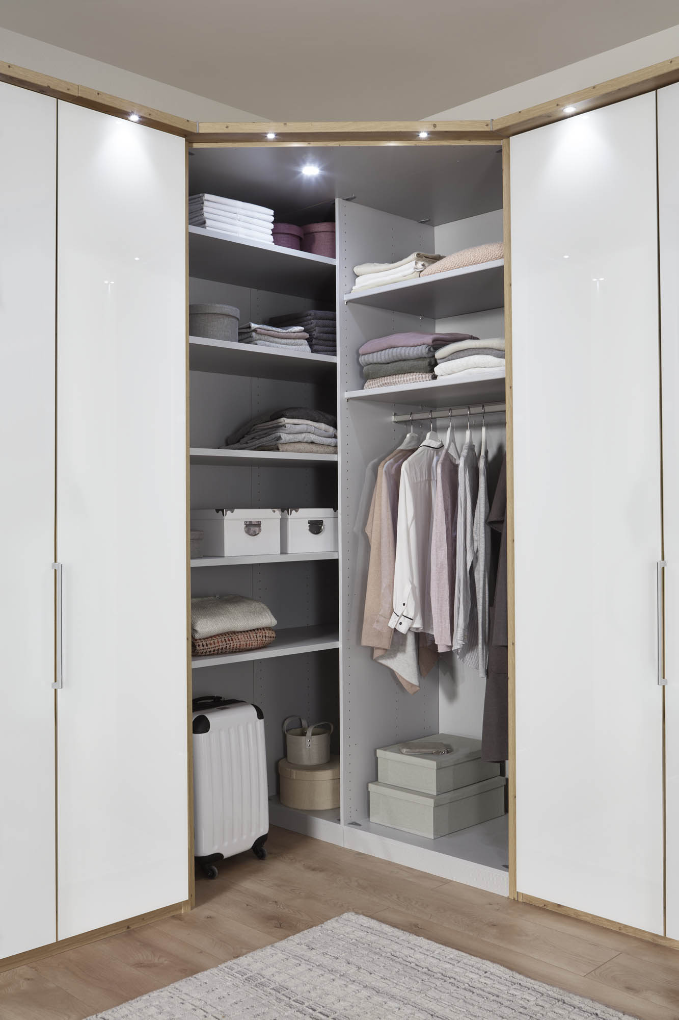 - Funktionale Innenausstattung mit Einlegeböden und Kleiderstangen