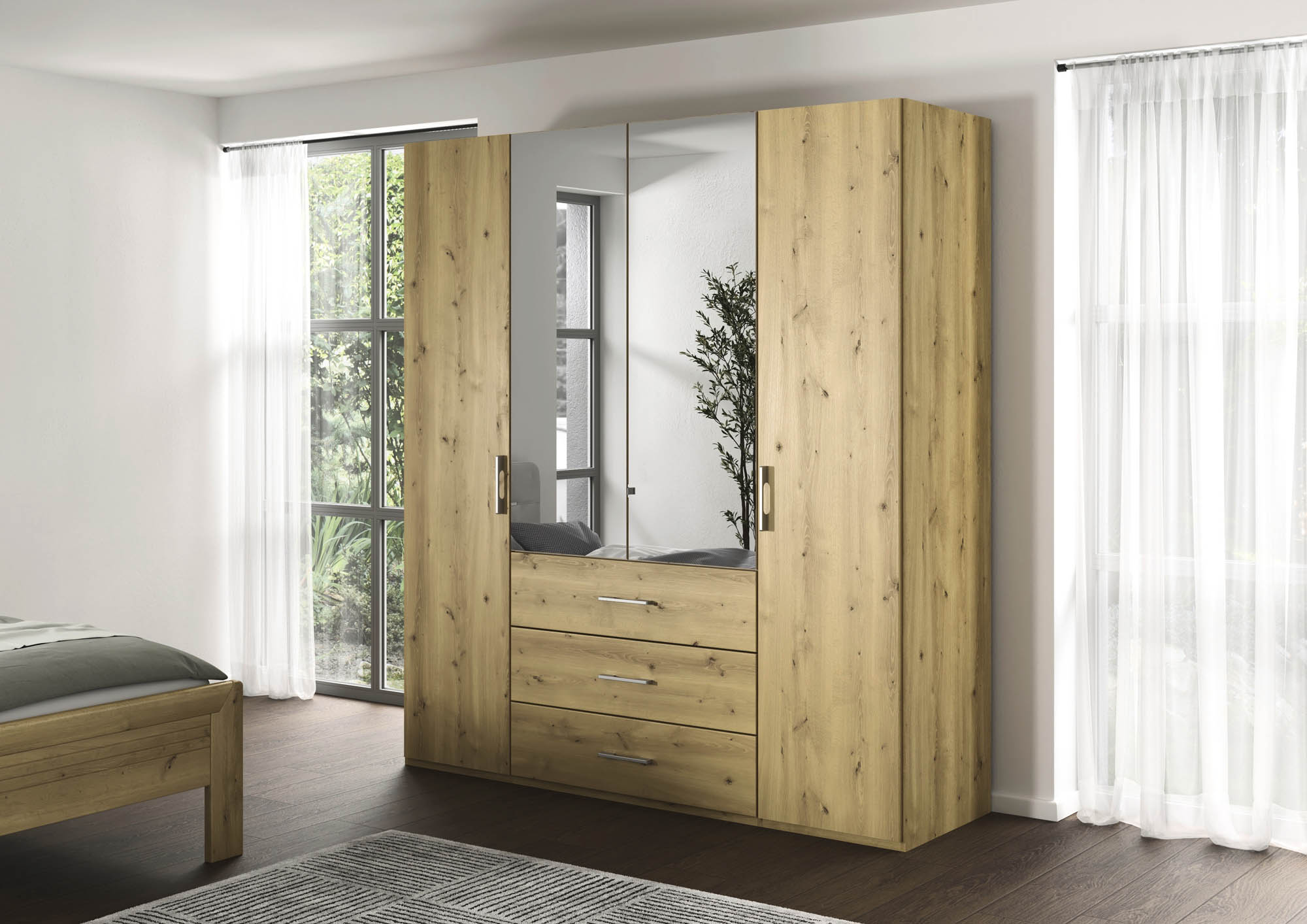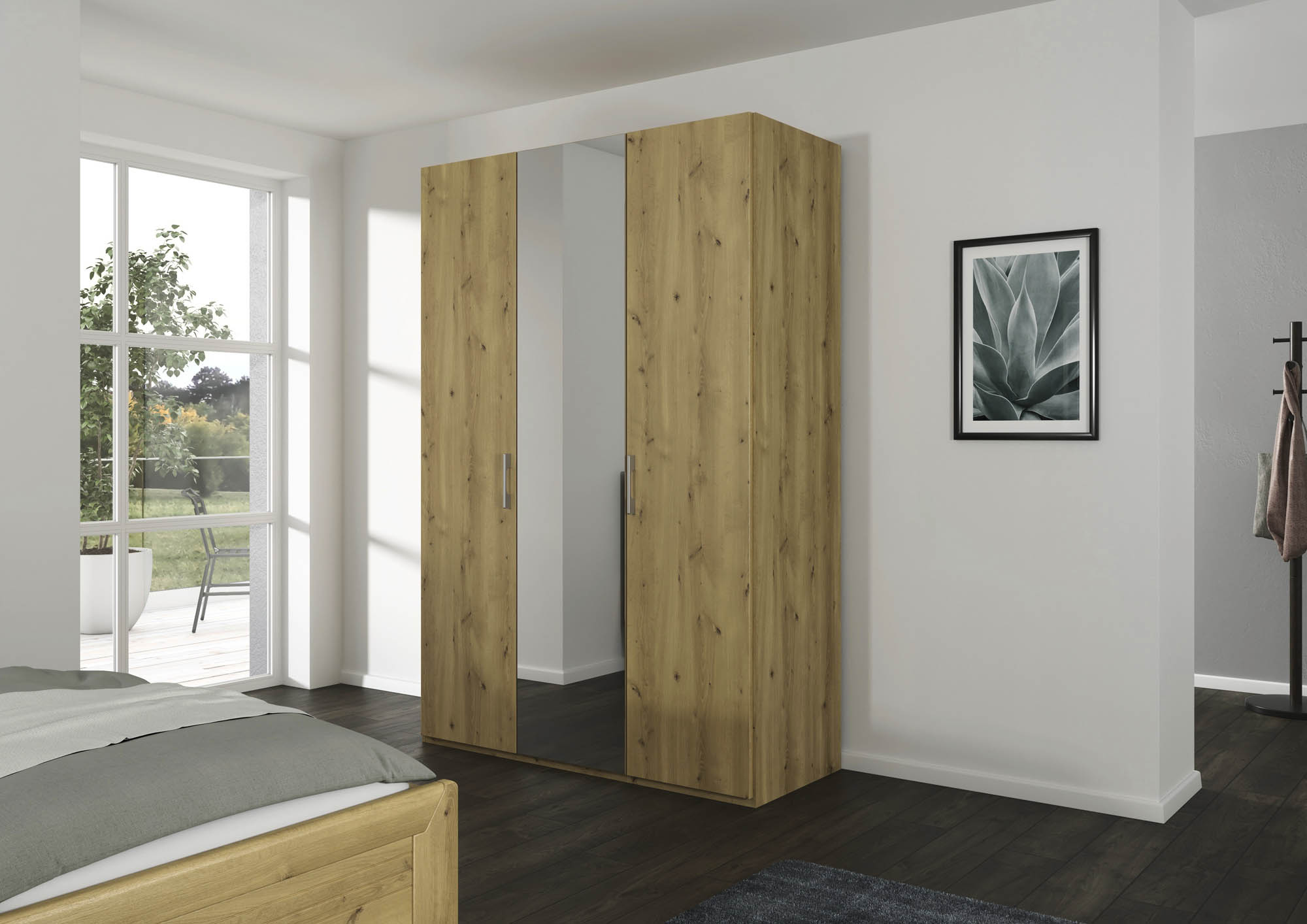 - Drehtürenschrank in hochwertiger Massivholz-Optik Asteiche